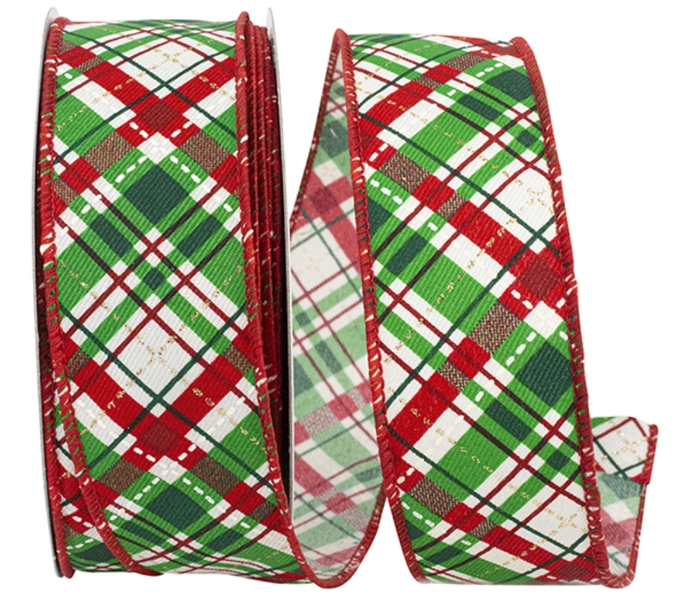 Festive Plaid Sparkle Wired Ribbon 1-1/2"x20yds