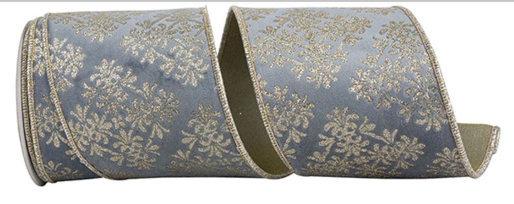 Filigree Crest Glitter Velvet Backed Wired Ribbon 4"x5yds