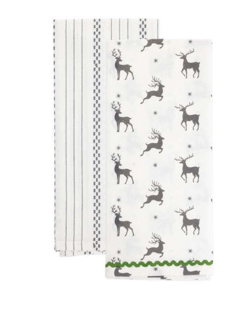 Gray Reindeer and Stripes Tea Towels