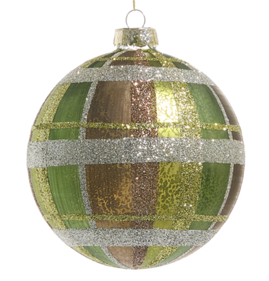 Green and Gold Plaid Glass Ornament
