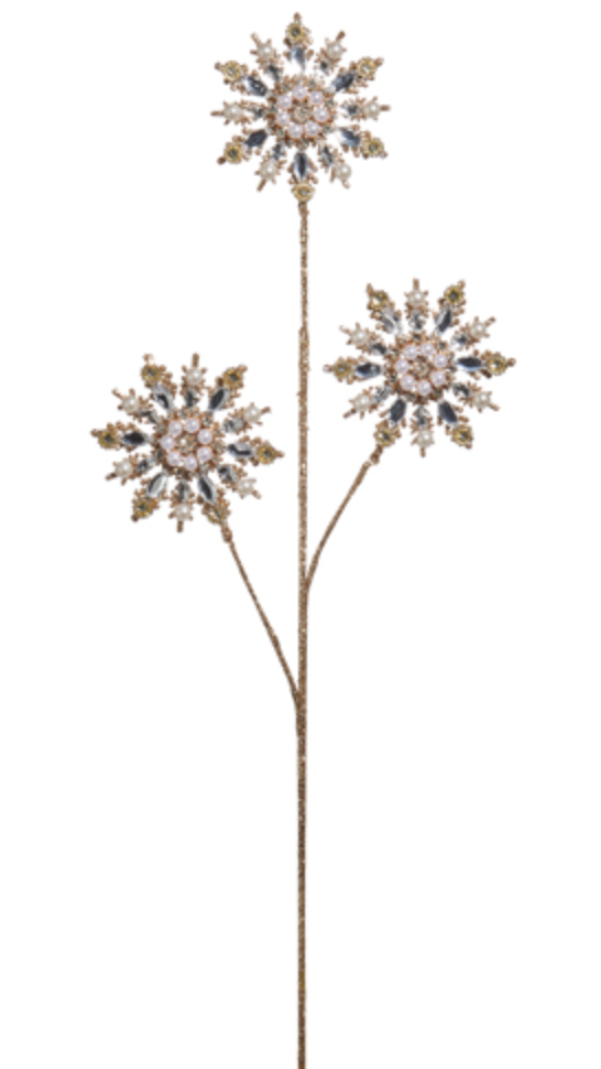 Gold Pearl Gem Snowflake Spray 29.5"