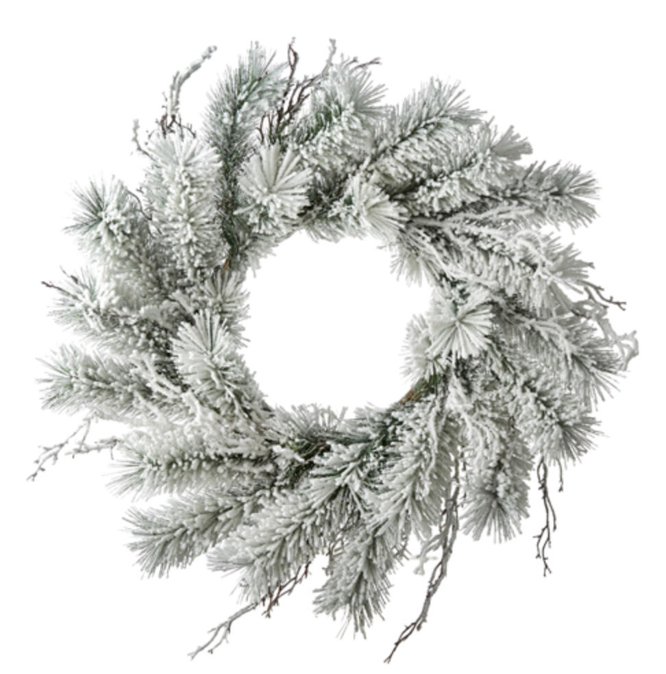 33" Frosted Long Needle Pine Wreath w/Large Gray Pinecones