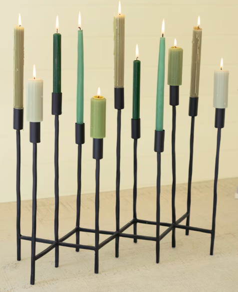 Eleven Forged Iron Taper Candelabra