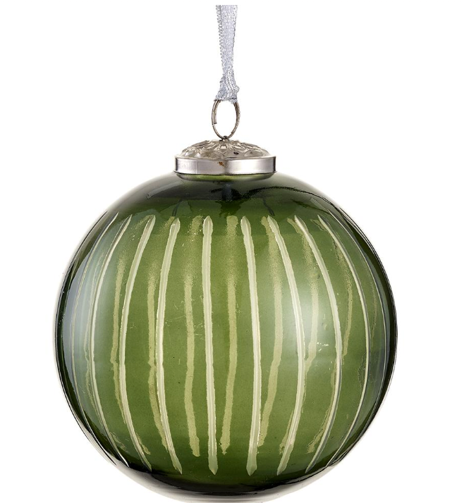 Striped Green Glass Ornament