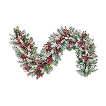 24" Glittered Mixed Green Foliage Wreath w/ Red Berries & Pinecone