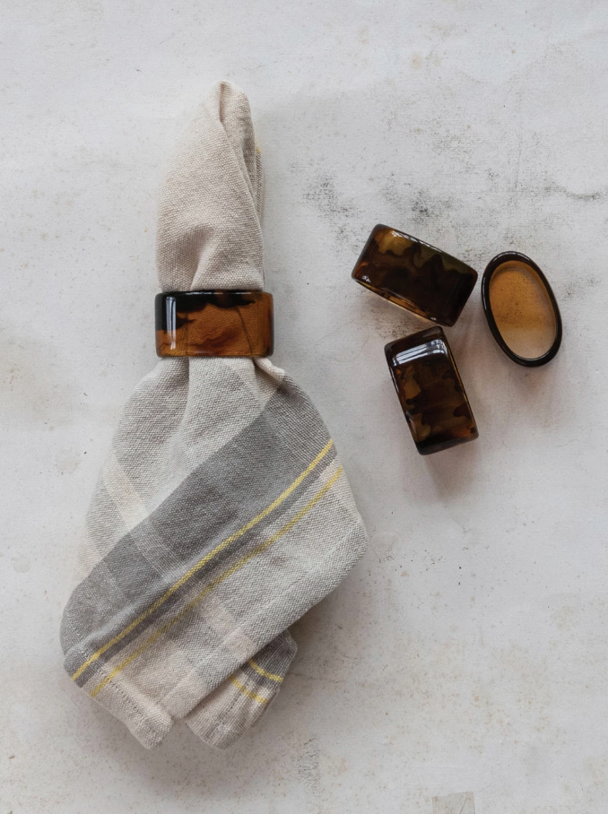 Set of 4 Cotton Napkins w/ Embroidery & Mustard Color Tassels