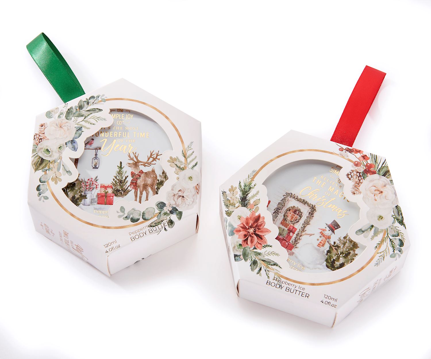 Smooth, nourish, and soften skin with the seasons most fragrant scents with this Christmas Scented Body Butter (120 ml) that comes packaged in a festive gift box (3.7x1.5x4.2).