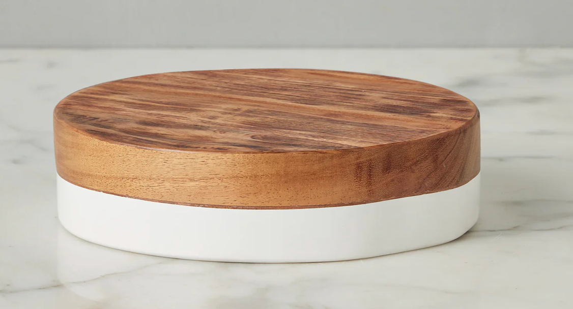 The Round Mod Block is a modern take on traditional serving boards, combining the warmth of reclaimed acacia wood with a bold, colorblock finish. Whether you're serving appetizers or anchoring kitchen essentials, it adds a clean and contemporary touch to your space.